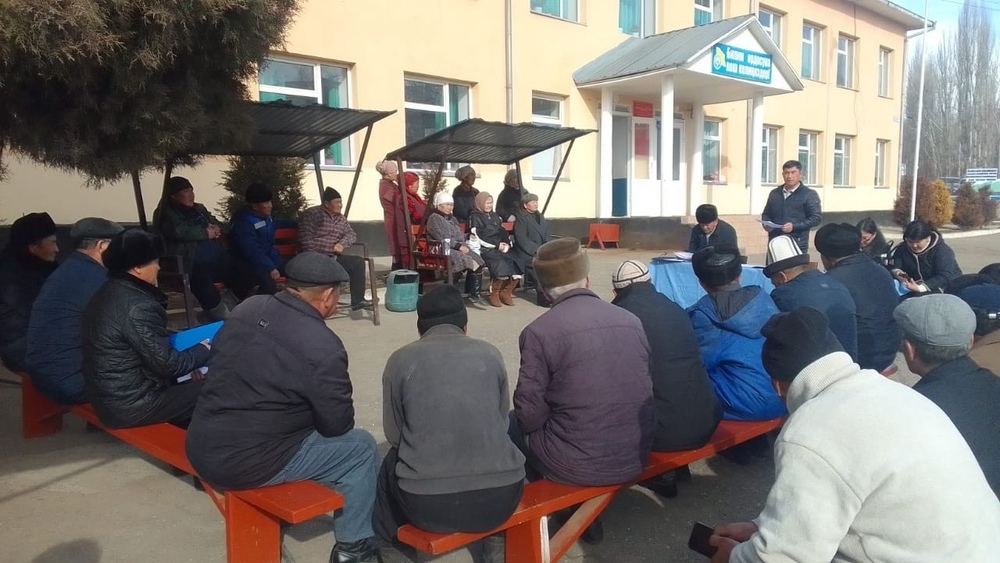 Өзгөндүн Ийри-Суу айыл өкмөтүнүн башчысы элди кыдырып, көйгөйлөрдү угуп жатат
