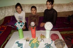 Ученицы из Оша делают из бисера и войлока разные сувениры
