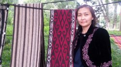 Жительница Оша В.Конокбаева изготавливает предметы для юрты